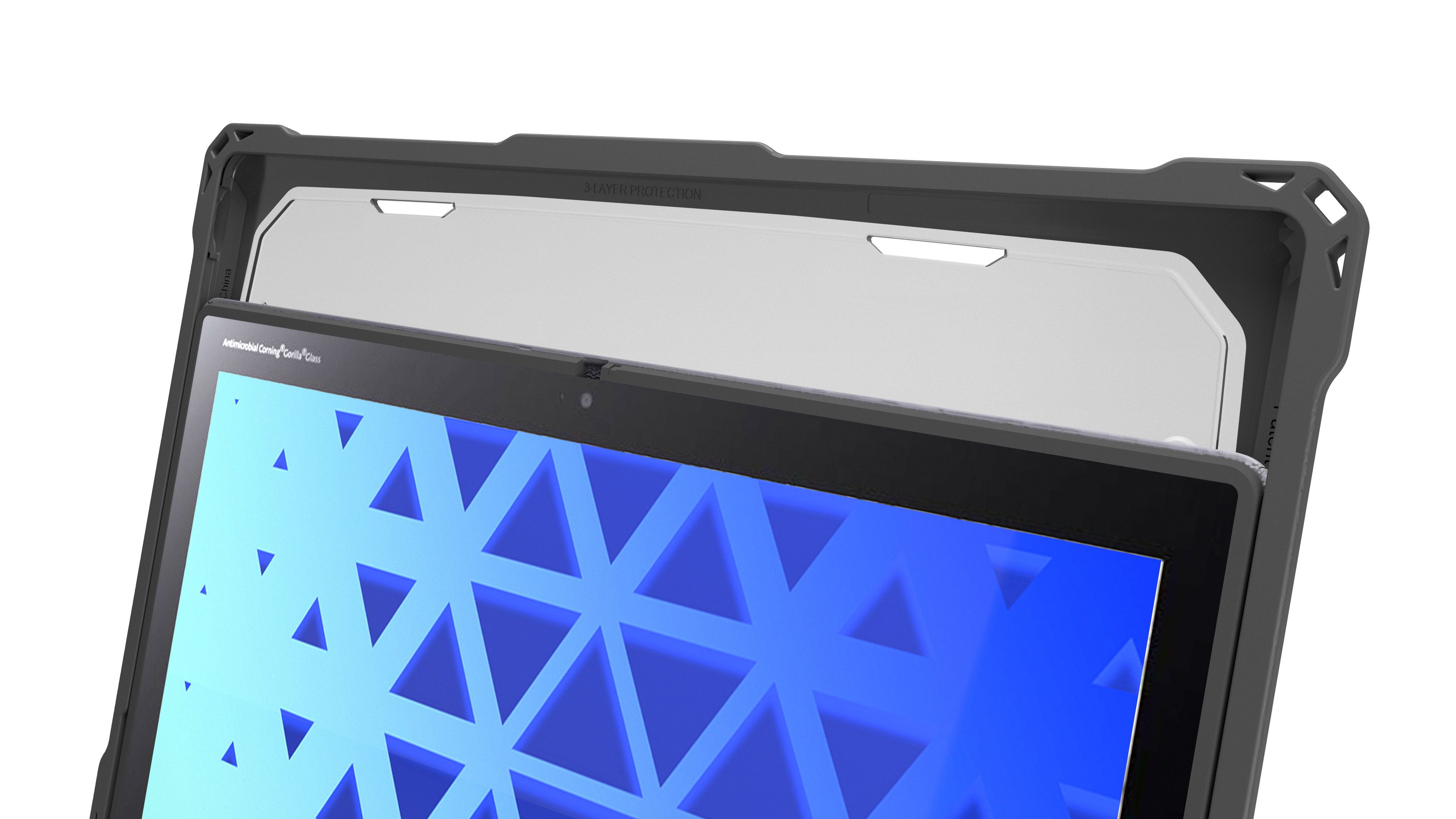 • Patented slide-on top panel adds screen protection by evenly dispersing pressure around the perimeter of the screen