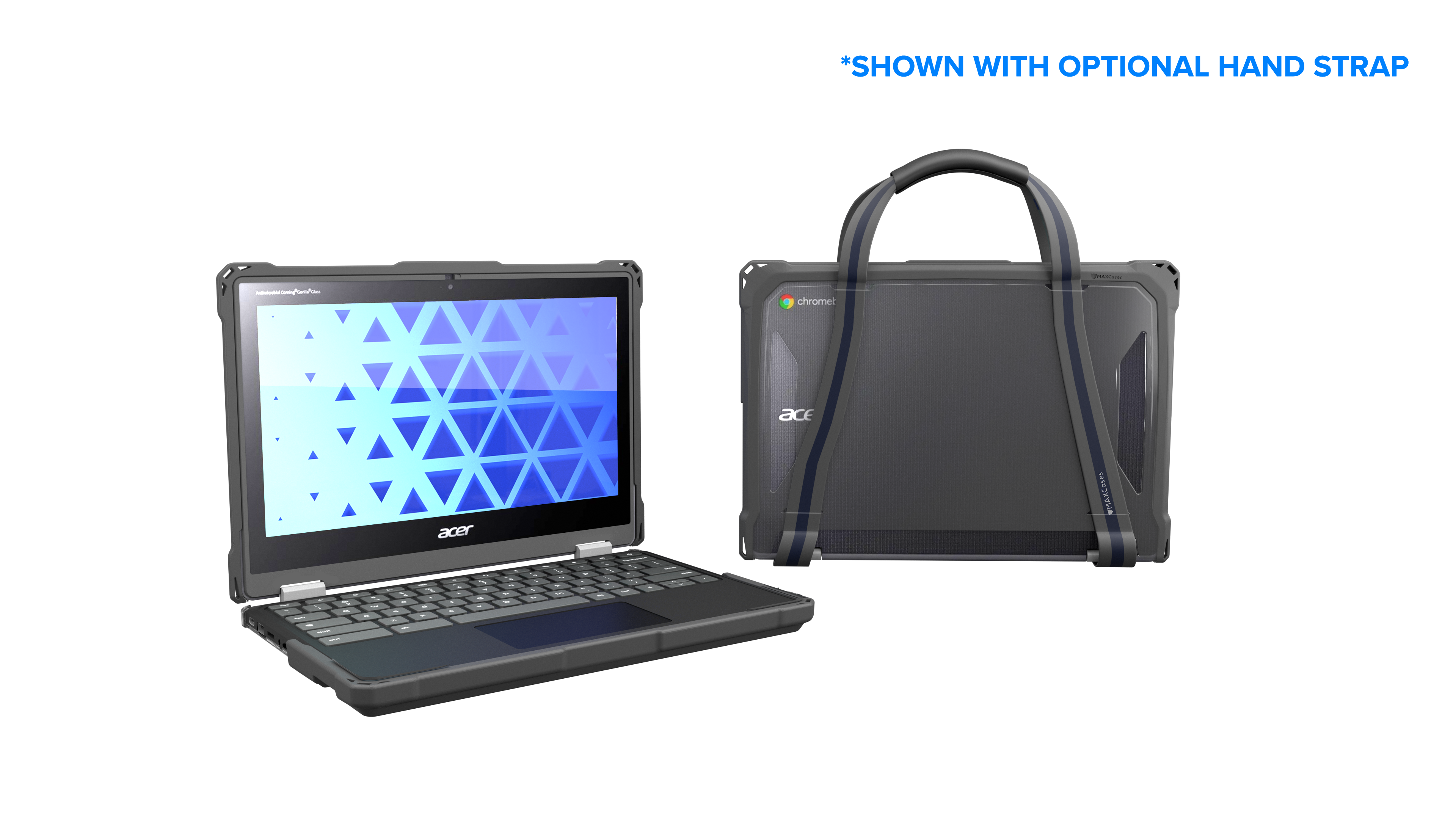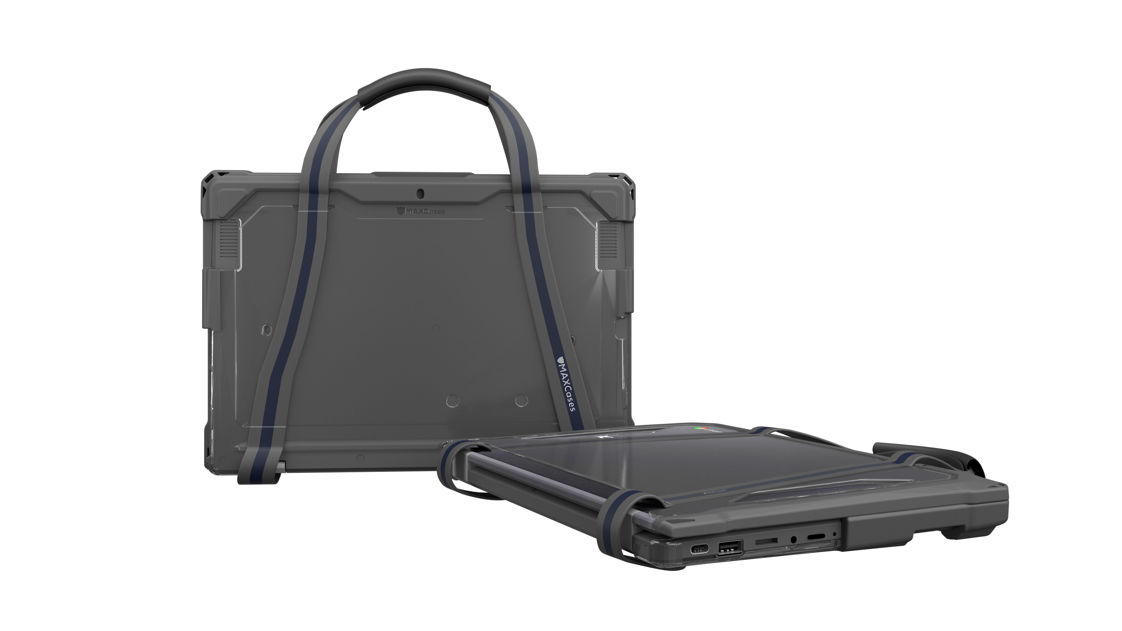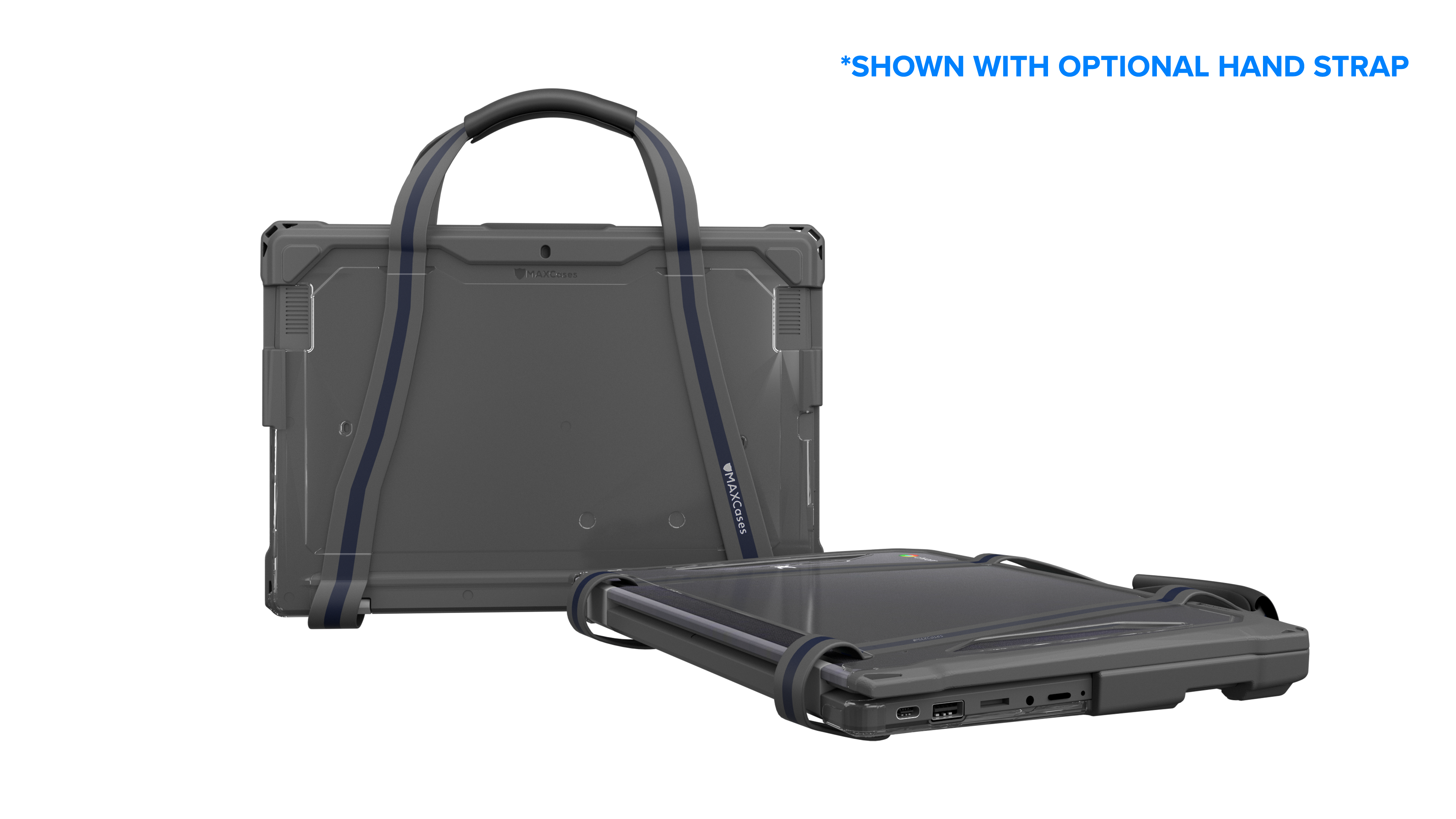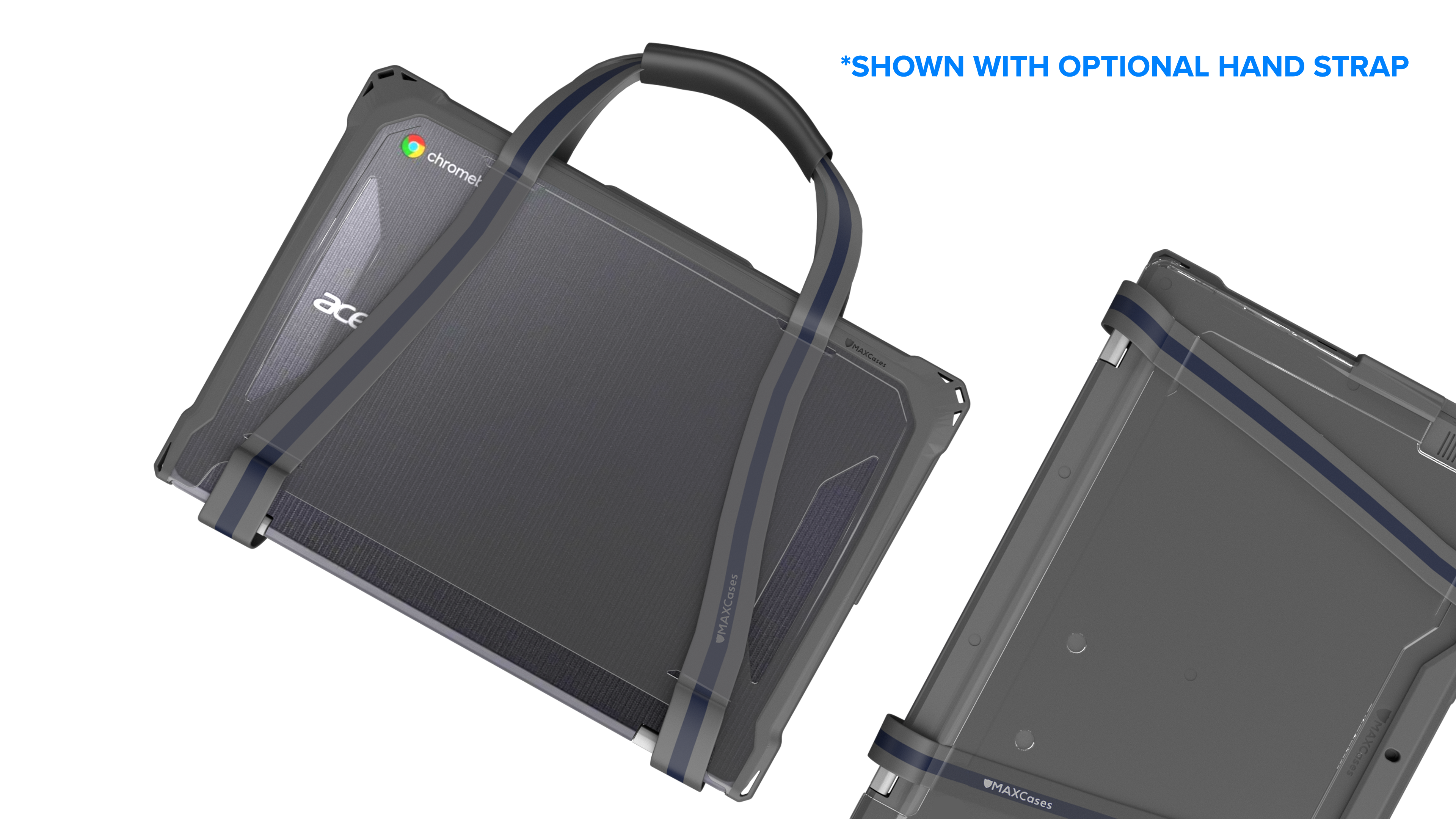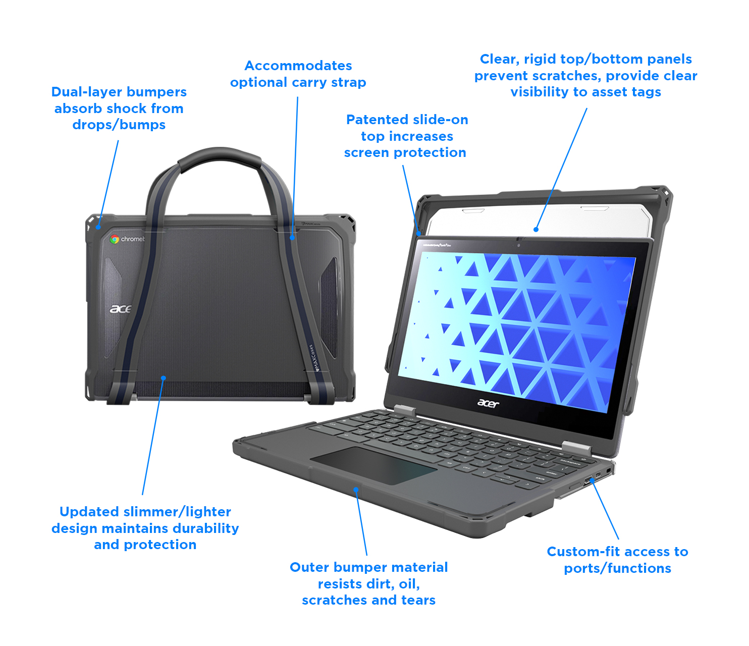 Featuring MAXCases' patented slide-on top design, the Extreme Shell-F Slide Case V3 protects Chromebooks with slide-on ease and enhanced screen protection in an updated, lighter-weight design. The slimmer top design further reduces carrying weight, without sacrificing durability or protection, while providing a sleek and easy-to-clean surface. The updated corners provide a slimmer profile designed to enhance protection under a wide range of impact circumstances. The innovative slide design disperses pressure evenly around the entire top perimeter, for a snug fit that eliminates pressure hotspots around the screen. Crafted with dual layers of tough TPU for outstanding impact and drop protection, the ESF3 case combines a cushioning inner layer with an oil- and dirt-resistant outer layer and is tested to meet MIL-STD 810G-516.6 for four-foot drops. The clear, rigid top and bottom panels prevent exterior damage and provide visibility for stickers and asset tags. The custom fit ensures easy access to all buttons and ports. For added convenience, the V3 design accommodates a handy carrying strap that fits snuggly against the case (sold separately).