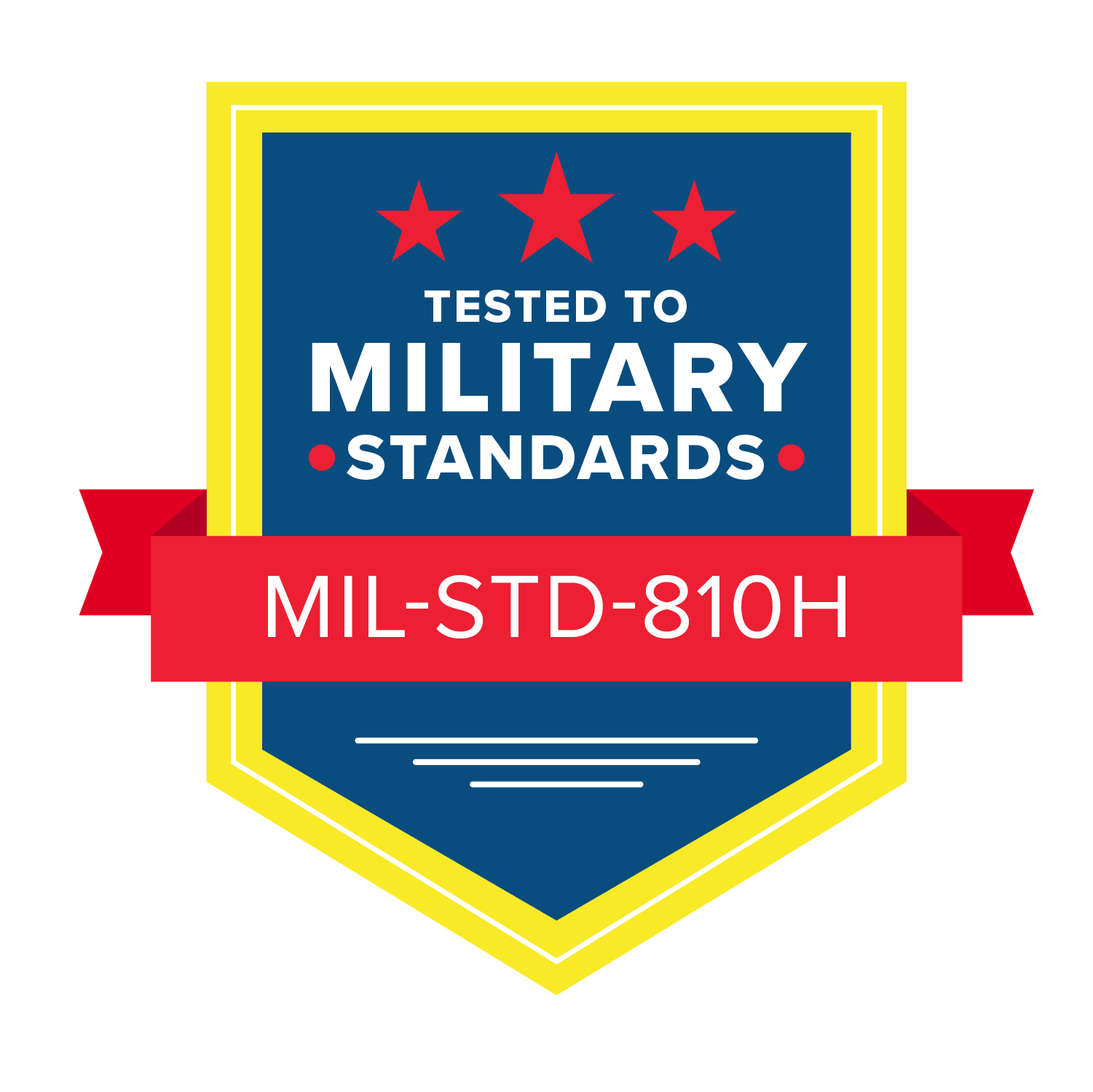 Withstands 26 drops from four feet onto plywood-topped cement to meet Military Standard 810H-516.6