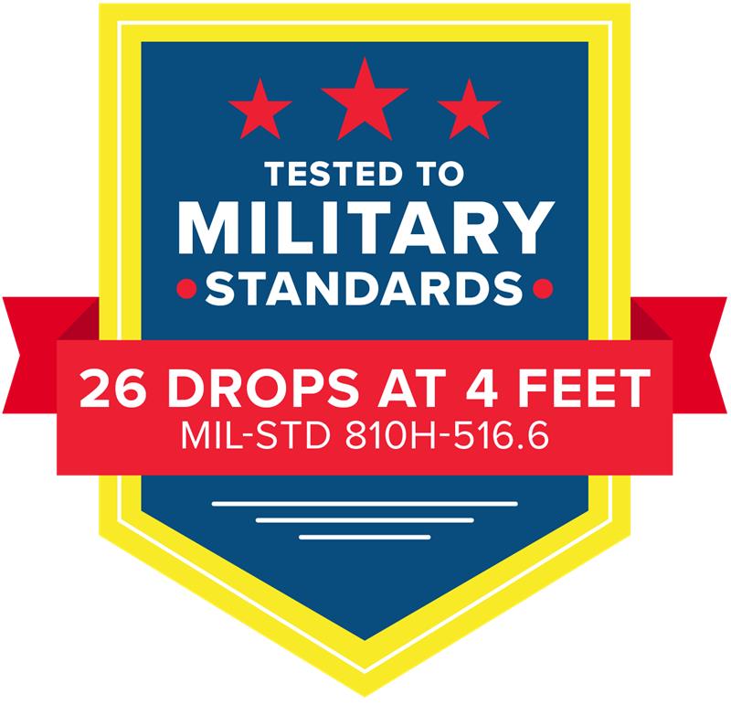 • Provides rugged drop protection tested to meet MIL-STD 810H-516.6